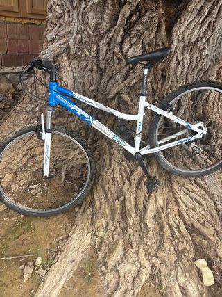 Bicicleta de montaña en color azul. - Cuadro de aluminio. - Horquilla delantera. - Ruedas de 26 pulgadas. - Portabidón incluido. Rueda delantera pinchada