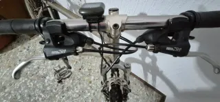 Vendo bicicleta de montaña BSC Custom con cuadro de aluminio, ligera y resistente. Ideal para ciudad, caminos y montaña ligera. 🔹 Talla: M (recomendada para personas entre 1.65 y 1.80 m; yo mido 1.74 m) 🔹 Ruedas: 26” 🔹 Cuadro: Aluminio 🔹 Horquilla: RST con suspensión delantera 🔹 Transmisión: Triple plato (24–27 velocidades) 🔹 Frenos: V-Brake 🔹 Estado: Muy buen estado general, funciona perfectamente.