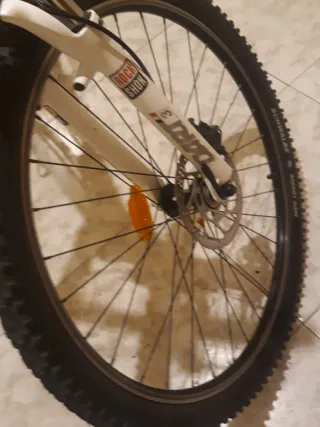 Bicicleta de montaña en excelente estado, casi nueva. Ideal para disfrutar de rutas y caminos. - Cuadro blanco con detalles rojos. - Ruedas de 26 pulgadas. - Suspensión delantera. - Frenos de disco.