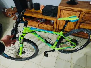 Bicicleta de montaña Cube LTD 29, Talla L, color verde lima y azul. Recién revisada. Perfecta para camino Santiago, ya que es ligera y tiene soportación para montaje de transportín. Ahora las actuales no lo llevan y hay que hacer inventos para montarlo. - Cuadro de aluminio. - Puños nuevos - Ruedas Maxis de 29 pulgadas. - Frenos de disco Shimano SLX - Horquilla RockShox. Reba - Cambio trasero XT - Cambio delantero SLX - Sillin Selle italia Regalo otro sillín de Gel y Manillar color azul a juego con colores de la bici (se ven en las diferentes fotos). Solo la horquilla Reba vale mas que su precio. NO NEGOCIABLE
