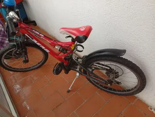 Bicicleta de montaña para niño, ideal para iniciarse en el ciclismo. - Cuadro de color rojo. - Ruedas todoterreno. - Suspensión delantera. Se aceptan ofertas con sentido
