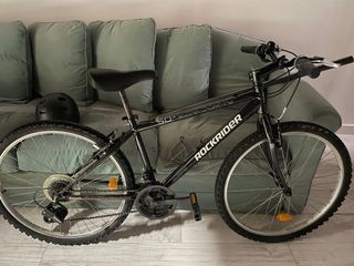 Bicicleta de montaña Rockrider en color negro. Se encuentra en buen estado. - Cuadro de aluminio. - Suspensión delantera. - Frenos de disco. - Ruedas de 29 pulgadas.