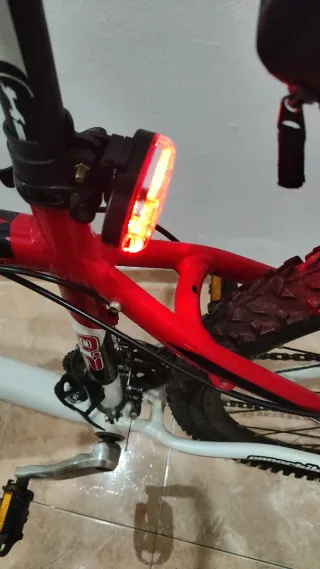 Bicicleta de montaña y ciudad que dispone de 7 marchas, con cuadro blanco y detalles en rojo. Precio no negociable - Sillín negro. - Ruedas de 26 pulgadas. - Pedales negros.
