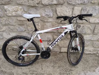 Bicicleta de montaña Moma con ruedas de 26 pulgadas y doble suspensión. - Cuadro de aluminio. - Frenos de disco. - Cambio Shimano. por falta de uso habría que darle una puesta a punto de cambios y frenos