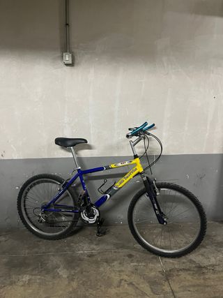 Bicicleta de montaña clásica de los años 90. Ideal para ciudad o iniciación. Todo lo importante es de calidad: Cuadro: Aluminio (ligero). Transmisión: 3x8 velocidades (Shimano Deore LX). Suspensión: RockShox Indy original. Estado: Funciona bien, aunque requiere una limpieza y puesta a punto básica por falta de uso. Robusta y fiable. Mejor ver y probar.