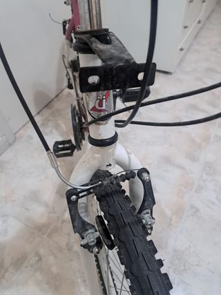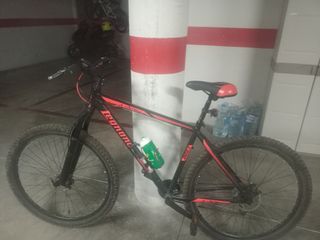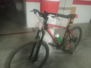 Bicicleta de montaña de color rojo y blanco. Ideal para disfrutar de rutas y senderos. - Cuadro de aluminio. - Suspensión delantera, con bloqueo. - Frenos de disco. - pastillas de frenos y el disco delantero cambiado solo tienen dos salidas. -ruedas 26". -se vende si pedales - la vendo por qué me he comprado una bicicleta nueva, la bicicleta está en muy buenas condiciones