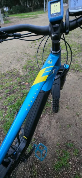 Bicicleta eléctrica Mondraker Crafty R de montaña en color azul y negro. - Cuadro de aluminio. - Suspensión delantera y trasera Fox. - Neumaticos nuevos. - Motor con pocos km. - Bateria de 500 w + otra de recambio. -Cadena y piñones nuevos.