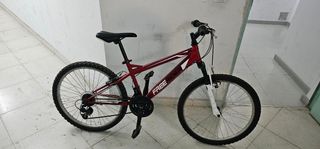 Bicicleta de montaña Free Rider en buen estado. Ideal para principiantes. - Cuadro rojo y componentes en buen estado. - Llantas en buen estado. - Lista para usar.