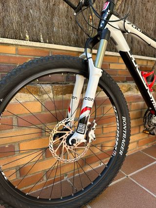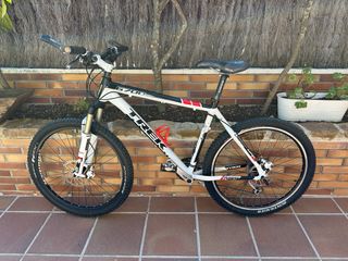 Vendo Trek 6700 en muy buen estado, lista para disfrutar de la montaña. Cuadro de aluminio Alpha resistente y ligero, talla 19.5” (49,5 cm), ideal para ciclistas de 1,75 m a 1,90 m aprox. 🔧 Características técnicas: • Horquilla delantera RockShox con bloqueo y suspensión ajustable. • Frenos de disco hidráulicos Avid Elixir (potencia y control en cualquier terreno). • Transmisión Shimano de 27 velocidades (suave y precisa). • Ruedas Bontrager con neumáticos de taco grueso, listos para trail. • Portabidón incluido. ✅ Perfecta para rutas de montaña, senderos técnicos o entrenamientos exigentes. ✅ Revisada y lista para usar.