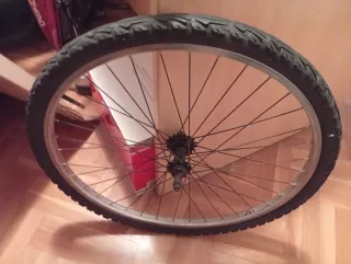 Llanta trasera para bicicleta de montaña de 26 pulgadas. Se vende completa con el piñón libre en perfecto estado,neumático y cámara .