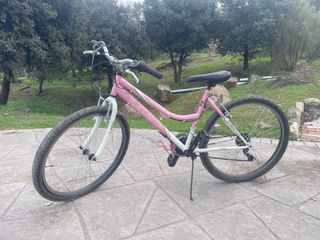 Bicicleta de montaña en color rosa, ideal para chicas. - Cuadro de aluminio. - Ruedas de 26 pulgadas. - Frenos V-brake. - Cambio Shimano de 7 velocidades. Bicicleta MTB 26” en buen estado, lista para usar. Cambios y frenos funcionando correctamente. Ideal para paseos, caminos y uso diario. Siempre guardada en interior. Se puede ver sin compromiso.