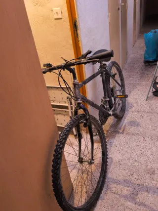Bicicleta de montaña negra en buen estado. Ideal para paseos por ciudad o montaña. - Cuadro de acero resistente. - Llantas en buen estado. - Lista para usar.