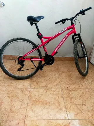 Bicicleta de montaña con ruedas de 26 pulgadas. Restaura con muy poco uso. Venta en persona - Cuadro de color rojo. - Horquilla delantera Marzochi - Sillín negro. - Frenos de disco delanteros.