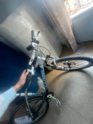 Vendo bicicleta BH de montaña en buen estado general. Cuadro de aluminio, ligera y resistente, con suspensión delantera y frenos de disco. Ideal para ciudad y caminos de tierra. • Transmisión de varios cambios (platos y piñones)• Ruedas con cubierta de taco• Sillín deportivo• Ha estado parada aproximadamente 5 meses• Tiene algunas marcas normales de uso • Una de las ruedas está pinchada (necesita cambiar o reparar la cámara) La vendo por cambio de domicilio