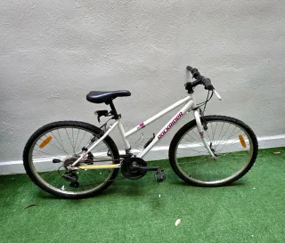 BICICLETA MTB DE MUJER •ROCKRIDER ST 100. •TALLA S (1.55-1.69 MTS) •BICICLETA DE MONTAÑA •COLOR BLANCO •RUEDAS DE 27.5" (DIAMETRO DE LA LLANTA ). •FRENOS V-BRAKE •3 PLATOS •7 PIÑONES •DE 21 VELOCIDADES. •HORQUILLA CON AMORTIGUACION •CON LUCES Y TIMBRE •COMPONENTES EN ALUMINIO. •ESTA COMO NUEVA.