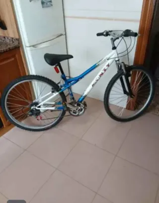 Bicicleta de montaña con un diseño deportivo y llamativo.en perfecto estado. -Precio Cerrado - Cuadro de aluminio en color azul y plateado. - Ruedas de 26 pulgadas.de aluminio. - Frenos V-brake. - Cambio Shimano.