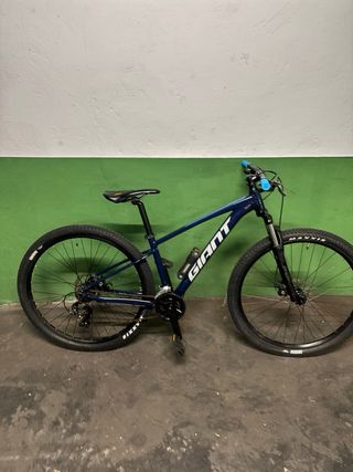 Bicicleta de montaña Giant Talon del año 2022. ¡URGE VENTA! - Cuadro de aluminio. - Ruedas de 29 pulgadas. - Frenos de disco. - Horquilla delantera -Perfecta para su uso únicamente le falta cambiarle el freno trasero (20€) -puños recién cambiados -Recién puesta a punto (pastillas de freno, engrasado y lavada) a falta del freno trasero. -Guardabarros de regalo Precio poco negociable