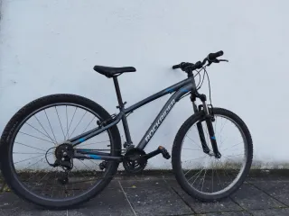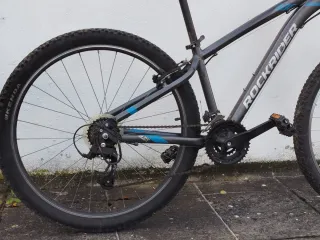 Bicicleta de montaña Rockrider ST 100 en color azul y negro. - Ruedas de 27.5 pulgadas. - Frenos de aro - Manguitos nuevos - Cuadro de aluminio - Suspensión delantera - 7 marchas * El sillin tiene unos desgastes en los lados. Precio negociable.