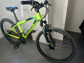 Bicicleta de montaña infantil 20' rockrider ST 500 color verde lima, casi nueva y en perfecto estado. - Ideal niños 6-10 años. - Ruedas de 20 pulgadas. - 6 velocidades. - Incluye timbre y luz trasera