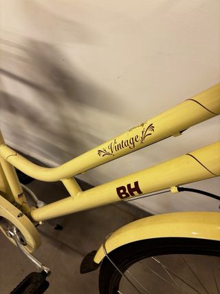 Bicicleta BH vintage de color blanco, en buen estado. - Modelo clásico con canasta. - Llantas en buen estado. - Ideal para paseos urbanos.