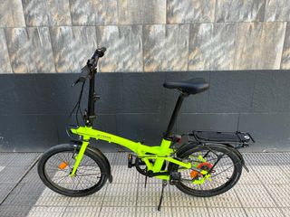 Bicicleta plegable de paseo en color verde lima, ideal para adultos. Perfecta para desplazamientos urbanos y fácil de guardar. - Cuadro de aluminio ligero. - Ruedas de 20 pulgadas. - Portabultos trasero. - Guardabarros delantero y trasero. Venta solo en Zaragoza