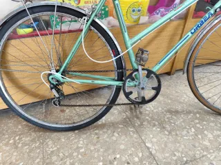 Bicicleta Orbea clásica en color verde menta. Ideal para paseos urbanos. Revisada, somos taller de bicicletas. - Cuadro de acero. - Cambio de marchas. - Portabultos trasero.