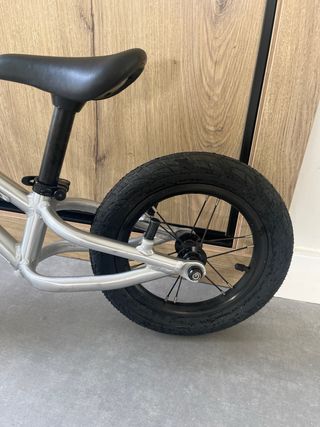 Bicicleta de equilibrio de color plateado, ideal para los primeros paseos. - Marco de aluminio ligero. - Ruedas de goma. - Sillín ajustable en altura.