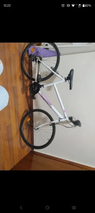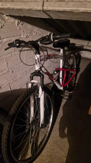 Bicicleta de montaña en buen estado. Ideal para paseos por ciudad o montaña. - Color blanco con detalles morados. - Llantas en buen estado. - Lista para usar.