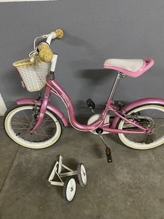 Bicicleta Decathlon Original 500 en buen estado. Ideal para paseos. - Color: Negro y rosa. - Incluye cesta delantera. - Ruedas con detalles de estrellas de colores.