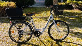 Bicicleta eléctrica Wayscral en excelente estado, ideal para desplazamientos urbanos o paseos. - Color blanco. - Timbre - Cesta delantera y regalo de la cesta trasera cerrada con cremallera. - Sillín marrón de piel estilo italiano. - Batería de litio extraible Samsung. - 7 niveles de potencia - Cambio 1-6 SHIMANO - Empuñadura ergonómica muy cómoda - Pegatinas reflectantes que se iluminan en la oscuridad en ambas ruedas. - Todavía lleva el plástico protector en los dos guardabarros. - Libro de características e instrucciones. - Información de la batería - Llave de la batería - Herramientas - PRECIO NO NEGOCIABLE