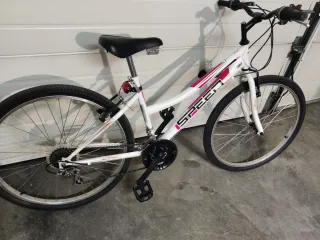 Vendo bicicleta BH Oregon de 24", una MTB juvenil muy resistente y cómoda, ideal para niños/as y jóvenes de unos 8 a 12 años. Es un modelo duradero y muy fiable de BH, perfecta para uso diario, paseos, caminos o trayectos al cole. La bici está funcionando, aunque lleva un tiempo parada y sería recomendable hacerle una pequeña puesta a punto (engrasar, ajustar frenos y cambios). Por lo demás, el cuadro, ruedas y transmisión están en buen estado. Características: Cambios con mandos giratorios Frenos V-Brake Cuadro ligero y resistente Sillín cómodo y en buen estado Cubiertas con buen agarre Caballete incluido