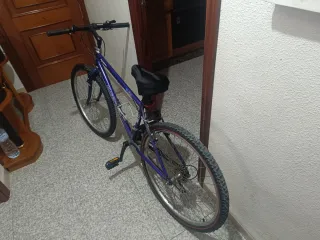 Bicicleta B’Twin azul en buen estado Vendo esta bicicleta de montaña, ideal para paseos y rutas. Características: • Ruedas desinchadas, necesitarán aire para rodar. • Cambio de marchas para adaptarse a diferentes terrenos. • Incluye timbre, botella de agua y reflectores en las ruedas como regalo. Precio: 145€ (con regalos incluidos). ¡Escríbeme para más detalles o para venir a verla!