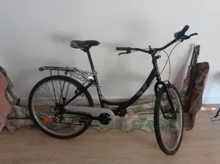 Bicicleta de paseo en color negro. Ideal para desplazamientos urbanos. También tengo el sillín, pero justo lo tenía en casa ya que la tengo fuera, está oxidada pero funciona bien para moverse por ciudad y dejarla atada en cualquier sitio, ideal para ello ya que es una bici que no llama la atención para ser robada.
