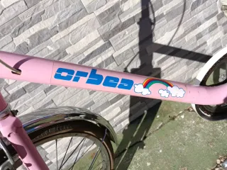 Bicicleta Orbea de color rosa, ideal para paseos. - Cuadro de metal. - Ruedas de 20 pulgadas. - Sillín blanco. - Guardabarros delantero y trasero. - Portaequipajes trasero.
