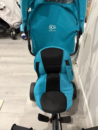 Triciclo Kinder Kraft en color gris, ideal para paseos. - Diseño moderno y funcional. - Asiento acolchado. - Capota. - Cesta. - Barra de empuje.