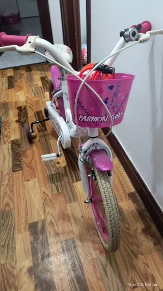 Bicicleta infantil rosa y blanca