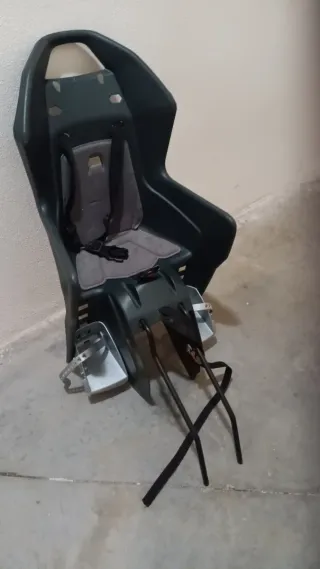 Silla para llevar a un niño en la bicicleta con todo - Asiento acolchado. - Cinturón de seguridad de 3 puntos. - Reposapiés ajustables. - Sistema de anclaje metálico. (Regalo Casco Negro)