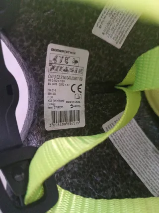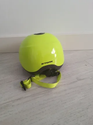 Casco de seguridad para bebé, ideal para paseos en bicicleta. Color amarillo brillante. - Marca Btwin. - Correa ajustable con cierre. - Diseño ligero y cómodo. - 44-49cm Talla XXS