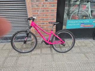 Bicicleta de montaña con un diseño llamativo en morado y rosa. Perfecta para paseos y rutas.. - Cuadro de bicicleta de montaña. - Ruedas de 26 pulgadas. - Portabidón incluido. SOMOS UN PROYECTO DE INSERCIÓN LABORAL, donde encontraras un taller, venta de material y bicicletas de segunda mano a tu medida. Pásate a conocernos en la Plaza MORAZA No 5 Bilbao -Bizkaia- o visítanos en bizieskola. net. RECOGEMOS TODO TIPO DE BICICLETAS. ¡¡¡ No es tu bici!!! Escribe Bizieskola en el buscador de Wallapop y encontraras lo que estás buscando. BH, ORBEA, CONOR, SCOTT, KONA, SPECIALIZED, CANNONDALE, PEUGEOT, SHIMANOn68