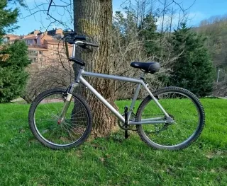 Bicicleta de montaña en color plateado, ideal para paseos y rutas. - Cuadro de aluminio.. - Ruedas de 26 pulgadas. SOMOS UN PROYECTO DE INSERCIÓN LABORAL, donde encontraras un taller, venta de material y bicicletas de segunda mano a tu medida. Pásate a conocernos en la Plaza MORAZA No 5 Bilbao -Bizkaia- o visítanos en bizieskola. net. RECOGEMOS TODO TIPO DE BICICLETAS. ¡¡¡ No es tu bici!!! Escribe Bizieskola en el buscador de Wallapop y encontraras lo que estás buscando. BH, ORBEA, CONOR, SCOTT, KONA, SPECIALIZED, CANNONDALE, PEUGEOT, SHIMANO, MAVIC,N95