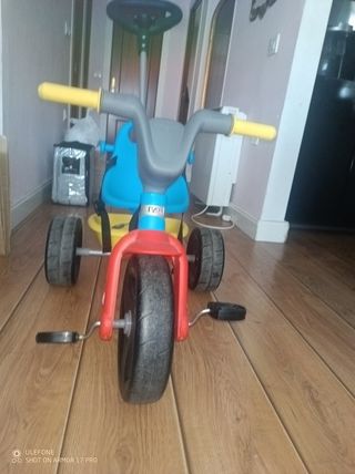 Se vende Triciclo Feber, con apenas quince días de uso, de ahí el ligero desgaste en las ruedas ya que son de plástico. Dispone de cinturón para seguridad del niño y un cómodo asa regulable para controlar el paseo cuando son muy pequeños, el asa puede quitarse con el paso del tiempo y utilizarlo como un triciclo normal. Dispone de bandeja trasera para guardar alguna cosa que también es extraíble. La altura es regulable en base a la altura del niño.