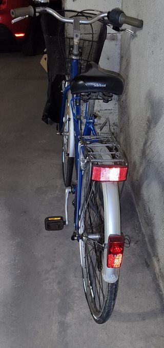 Bicicleta de paseo urbana de aluminio en buen estado. Ideal para trayectos cortos. - Color azul oscuro. - Incluye portaequipajes trasero. - Llantas en buen estado.
