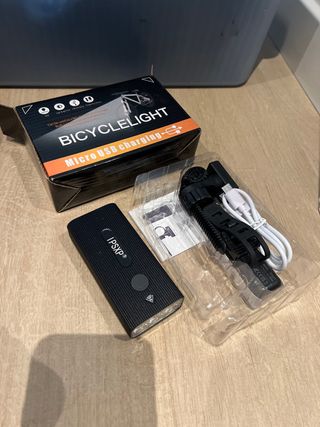 Luz frontal y trasera para bicicleta marca IPSXP, ideal para tus paseos nocturnos. Viene con su caja original y accesorios. - Color negro. - Carga por Micro USB. - Incluye soporte y cable de carga.