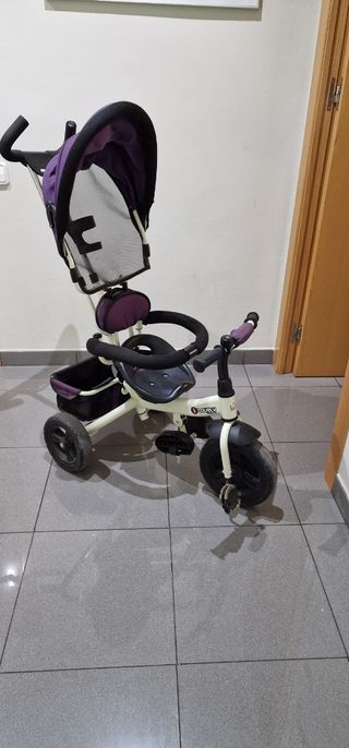 Triciclo infantil con un diseño moderno y práctico. Ideal para paseos. - Manillar de empuje para adultos. - Asiento seguro con arnés Los manillares tienen juego pero giran perfectamente