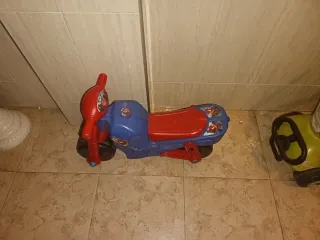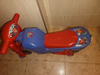 Moto de juguete para los más pequeños. Ideal para paseos divertidos. - Diseño en color azul y rojo. - Detalles de Spiderman.