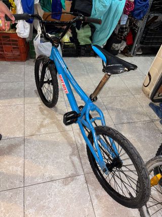 Bicicleta BMX de color azul, ideal para trucos y paseos. - Cuadro resistente. - Ruedas de 20 pulgadas. - Pedales de plataforma.