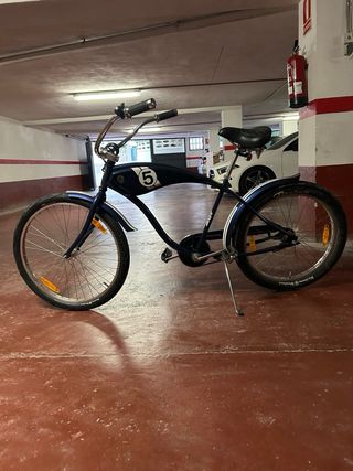Bicicleta de paseo en color negro, ideal para desplazamientos urbanos. Cuenta con una práctica cesta delantera. - Cesta de malla negra. - Manillar curvo plateado. - Guardabarros delantero y trasero. - Pata de cabra. Sistema de freno completo resien cambiado, las marchas no van, se pueden reparar , esta en la marcha 4.