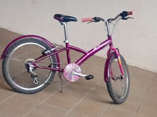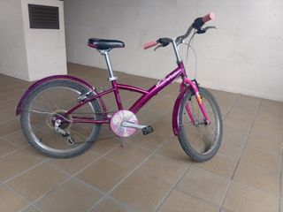 Bicicleta infantil de color morado, ideal para paseos. - Ruedas de 20 pulgadas. - Guardabarros delantero y trasero. - Sillín ajustable. - Frenos manuales.