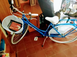 Bici de paseo con dos cestas, sillín de gel , dispositivo para sujetar el tf . Lo que seve en foto , esta nueva poco uso, 90 se podría negociar el precio. Interesados 697230358