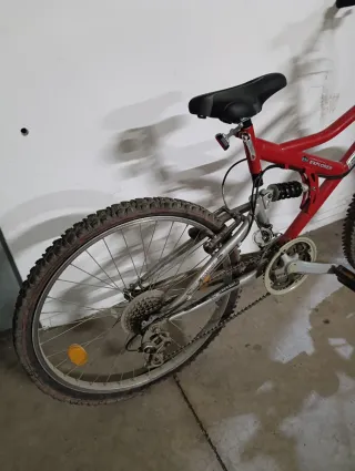 Bicicleta de montaña de color rojo, modelo Explorer. Ideal para paseos y aventuras. - Cuadro de aluminio. - Suspensión delantera y trasera. - Frenos de disco.
